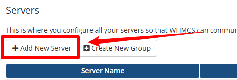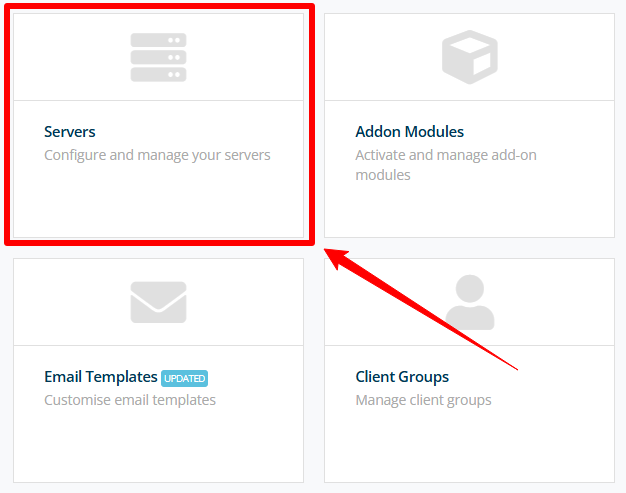 Please go back to your whmcs management panel and enter the server management page, the path is [Setup]→[Products/Services]→[Servers]
